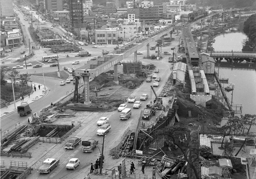 高度成長期とは実質経済成長率が年平均で10%前後を記録した1955年頃から1973年頃までを指し、名神高速道路(1963年7月開業)や東海道新幹線(1964年10月開業)といった大都市間の高速交通網、首都高速道路や阪神高速道路も整備され、都内では都営交通の地下鉄1号線(現・都営交通浅草線)、営団地下鉄(現・東京メトロ)の日比谷線といった地下鉄新線の整備が進められました。